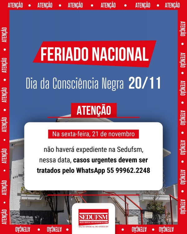 Sedufsm tem recesso nesta quinta e sexta-feiras, dias 20 e 21