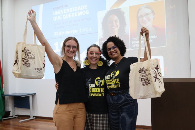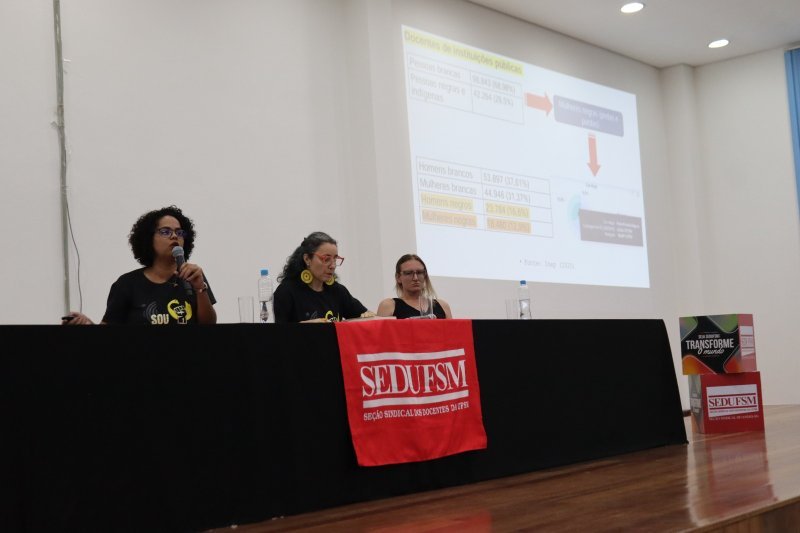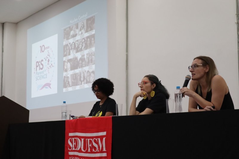 No dia 31 de abril, a Sedufsm promoveu a terceira edição do seminário “Universidade que Queremos", com as presenças de Fernanda Staniscuaski, docente da Universidade Federal do Rio Grande do Sul (UFRGS) e criadora do movimento Parent in Science, e de Ana Luisa Araujo de Oliveira, professora da Universidade Federal do Vale do São Francisco (Univasf) e coordenadora do Observatório de Ações Afirmativas (Opará).