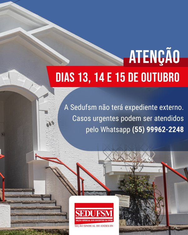 Sedusm terá expediente interno nos dias 13, 14 e 15 de outubro
