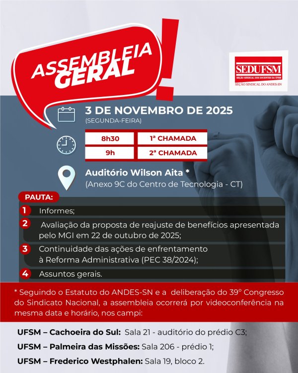 Encontro promovido pela Sedufsm ocorre na próxima segunda, 3, pela manhã, em todos os campi da UFSM
