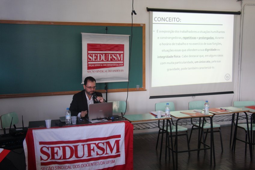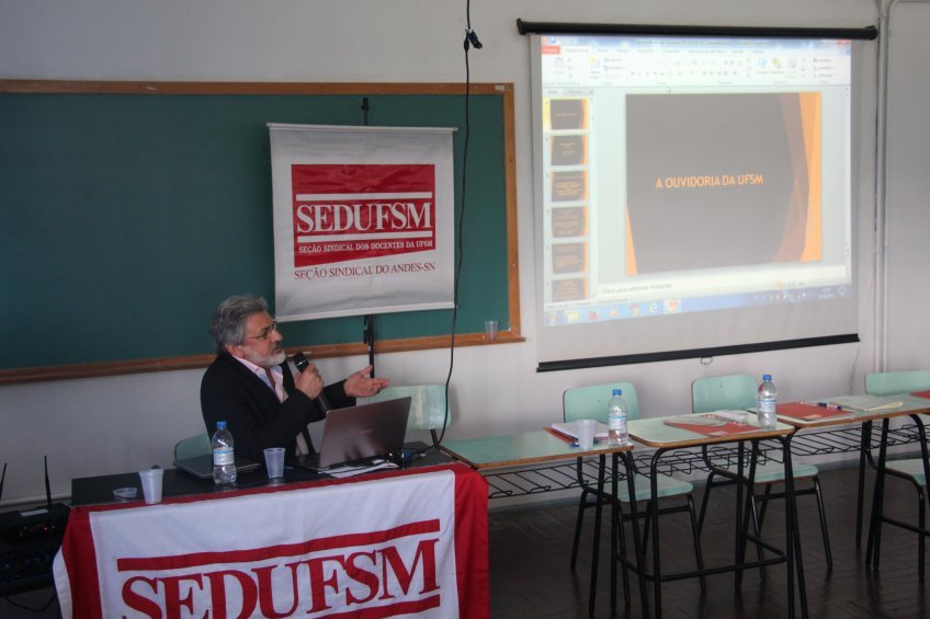 A atividade foi realizada a partir de sugestão dos docentes da própria Unidade, em visita anterior da seção sindical. Além de Negrão, participaram da mesa como expositores o professor Gihad Mohamad (diretor da Sedufsm), Heverton Padilha (assessoria jurídica da Sedufsm) e Jorge Renato Alves da Silva (Ouvidor-geral da UFSM). A coordenação ficou por conta da professora Maristela Souza, diretora da Sedufsm. A reunião ocorreu na sala 13 do prédio principal do campus.