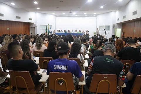 Maria Denise Schimith, diretora do CCS, explicou que a Conferência Democrática tem como objetivo definir as prioridades do ensino, pesquisa, extensão e gestão. “De setembro a dezembro de 2022, foram realizadas 12 pré-conferências no CCS. Perguntamo-nos: o que queremos para o CCS? Um total de 258 pessoas formularam propostas. Amanhã [quinta-feira, 23] serão definidas as 10 prioridades que a nossa gestão se comprometerá em transformar em ações e metas”, explicou a docente.