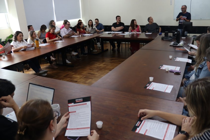 Nesta quarta-feira, 5 de novembro, a Sedufsm marcou presença na reunião do Conselho do Centro de Ciências da Saúde (CCS) para expor os motivos pelos quais o sindicato é frontalmente contrário à Reforma Administrativa (PEC 38). Atualmente em tramitação na Câmara dos Deputados, a proposta é uma reedição ainda mais nefasta da PEC 32, suspensa no final de 2021 após intensa mobilização popular. Isso porque, explicou o professor Jadir Lemos, tesoureiro-geral da Sedufsm, o texto altera centenas de emendas constitucionais, deformando essencialmente os serviços públicos e o próprio Estado brasileiro.