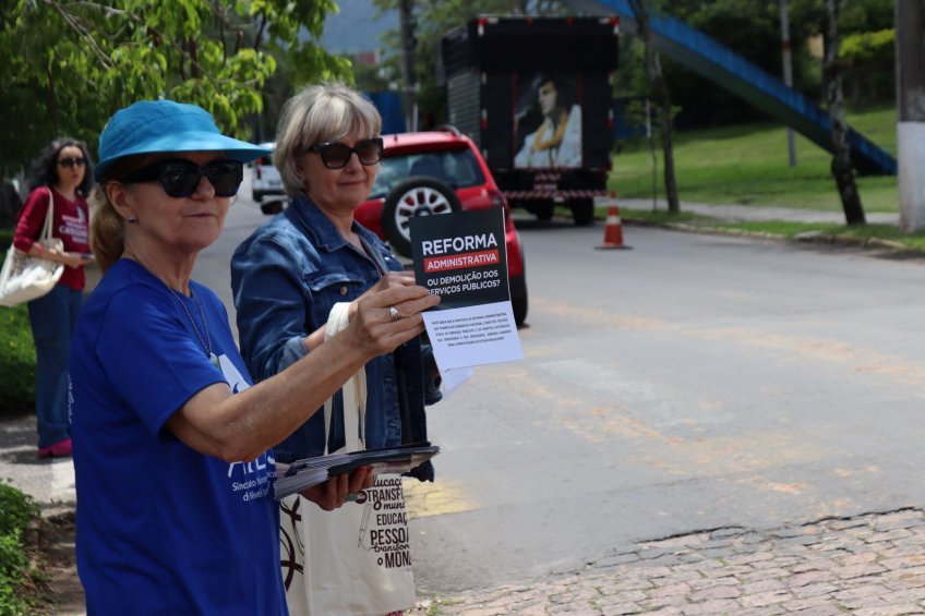 Panfletagem na UFSM abre semana de mobilização contra a Reforma Administrativa