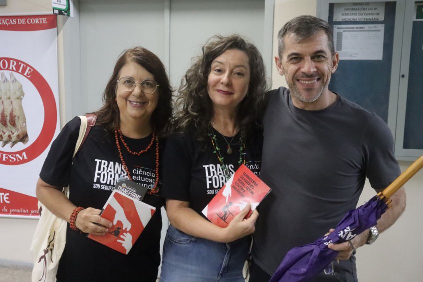 Durante a passada pelas Unidades de Ensino da UFSM, as e os integrantes da diretoria da Sedufsm aproveitaram para divulgar a terceira edição do seminário ‘A universidade que queremos’. O evento, que acontece na terça, 31 de março, às 19h, no Auditório Wilson Aita, anexo C do Centro de Tecnologia, vai discutir “Impactos de gênero e de raça na carreira docente”. A atividade será presencial, mas também terá transmissão pelo canal da Sedufsm no Youtube. Leia mais aqui sobre a atividade.