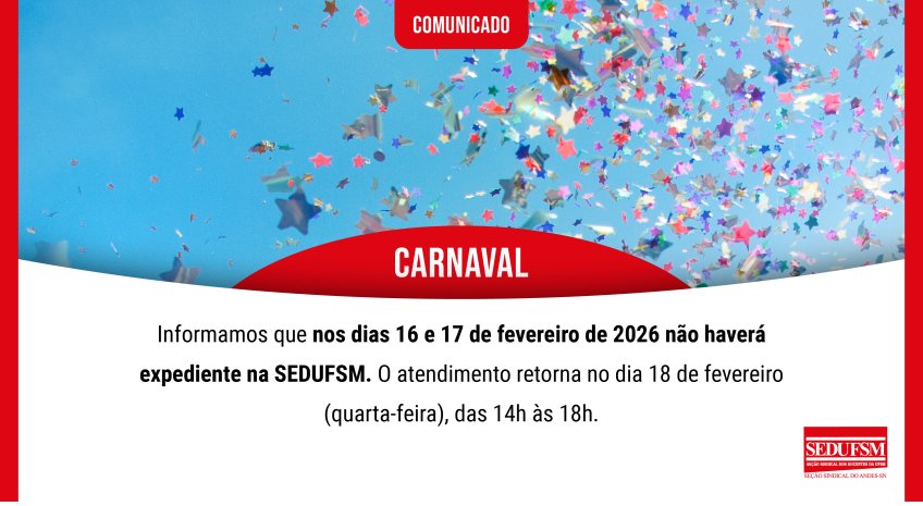 Sindicato terá recesso de Carnaval nos dias 16 e 17 de fevereiro, segunda e terça