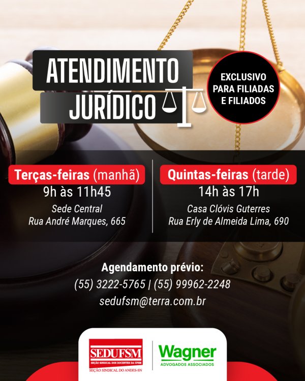 Plantões jurídicos da Sedufsm ocorrem no Centro e em Camobi em dois dias da semana