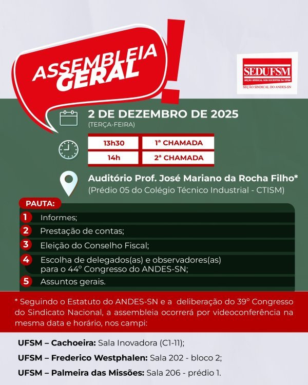 Dentre os itens da pauta, está a escolha de delegados(as) e observadores(as) para o 44º Congresso do ANDES-SN