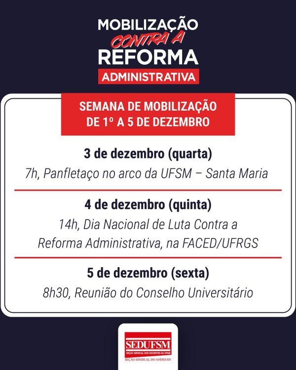 Reforma Administrativa: Sedufsm pede que reitoria da UFSM leve a pauta à Andifes