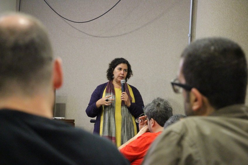 Somando ao debate uma outra perspectiva que não a financeira (mas complementar a essa), a professora da Universidade Federal do Rio Grande do Sul (UFRGS), Russel Teresinha Dutra da Rosa, resgatou a trajetória do projeto “Escola Sem Partido”, em especial no estado, assim como compartilhou um pouco da experiência de resistência da Frente Gaúcha Escola Sem Mordaça. Sobre esse segundo ponto, aliás, Russel destacou a importância de se criar uma rede de apoio para professoras e professores que estão sofrendo perseguição política em seus ambientes de trabalho, com suporte técnico sobre como proceder nessas situações, além da produção de materiais informativos a respeito do perigo da proposta. Assim, cartilhas, campanhas, documentários e livros já foram produzidos e, principalmente, precisam ser compartilhados – um desses materiais, trata-se de um manifesto assinado por 72 entidades e recentemente entregue às candidaturas da eleição presidencial que se aproxima. Aliás, tratando de eleições, a docente da UFRGS destacou que a aprovação do projeto em nível nacional passa diretamente pelo congresso federal que teremos em breve, já que, na melhor das hipóteses, a discussão será feita em plenário. Nesse momento, a versão do “Escola Sem Partido” em discussão é tratada como ainda mais perigosa, embora mais “camuflada”. Conforme Russel, existe inclusive a possibilidade de inserção do projeto na Lei de Diretrizes de Base, a LDB. Encerrando sua fala, a professora ainda destacou que a melhor maneira de combater a doutrinação é com a pluralidade de ideias, e não com a censura.