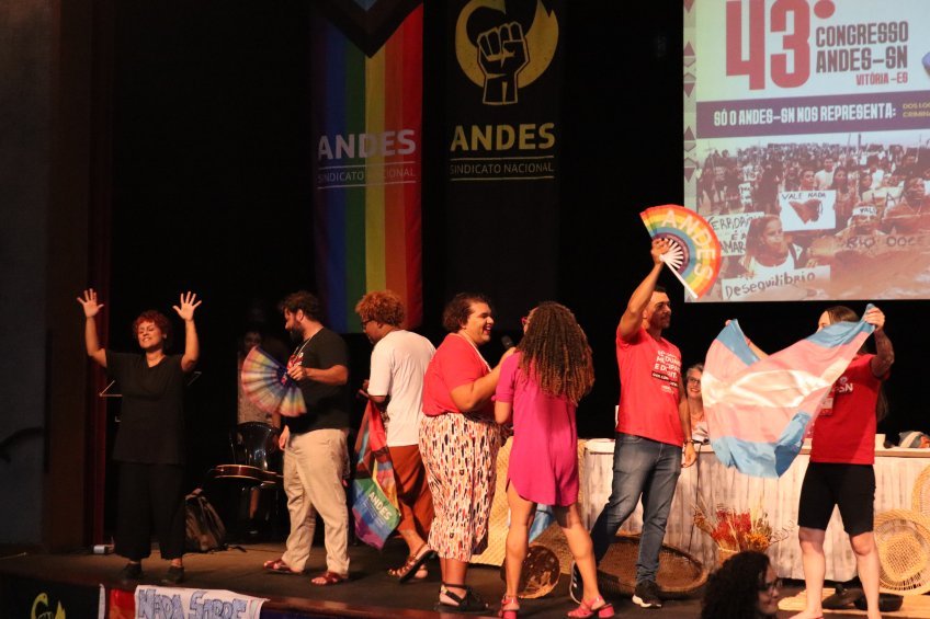 Após a conclusão dos debates nos grupos mistos (realizados no segundo e terceiro dia), as e os congressistas do 43º Congresso do ANDES-SN concluíram, na manhã desta quinta-feira (30), as deliberações sobre o plano de lutas setorial. O evento, que ocorre na Universidade Federal do Espírito Santo (UFES), foi aberto com manifestações: ato antirracista, ato pela visibilidade trans e ato contra o desmonte da educação indígena no Pará, promovidos, respectivamente, pelo Coletivo de Docentes Negras e Negros do ANDES-SN e pelo Coletivo de Docentes LGBTI+.