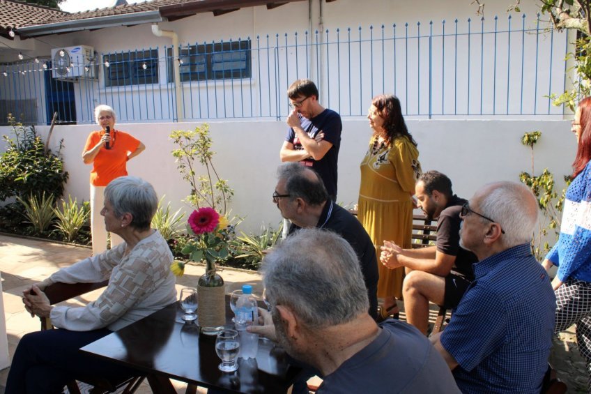 Melina Guterres (ao microfone na foto acima), filha de Clóvis, confessou ainda ser difícil falar sobre o pai, mas ponderou como a nova sede pode servir de espaço para que as e os docentes aposentados se encontrem, partilhem momentos e ideias. “Essas pessoas estão ativas e têm necessidade de conviver e compartilhar”, sugere.