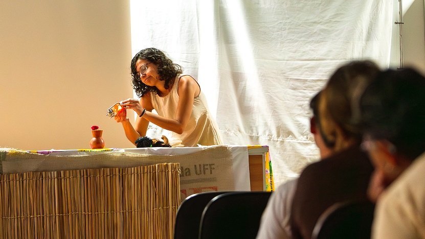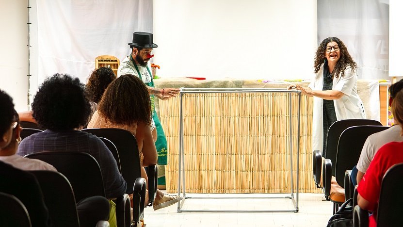 O grupo de teatro “Laboratório Brecht” apresentou cenas da peça “Ambientes de negócio”, ainda em construção, e trouxe, às e aos presentes, uma reflexão sobre os impactos na mineração predatória no meio ambiente e os dez anos do crime da Vale em Mariana (MG).