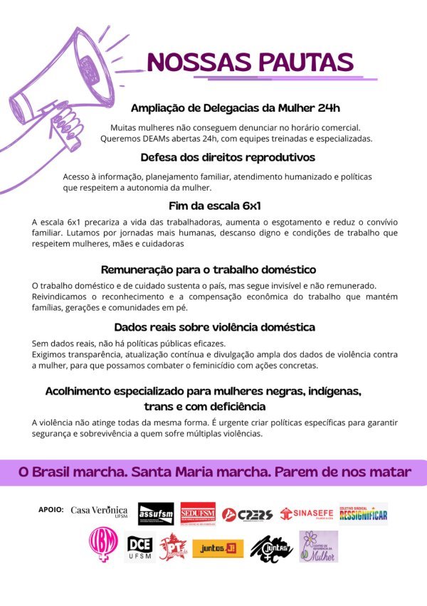 Sedufsm participa de ato contra feminicídios neste sábado, 13 de dezembro, em Santa Maria