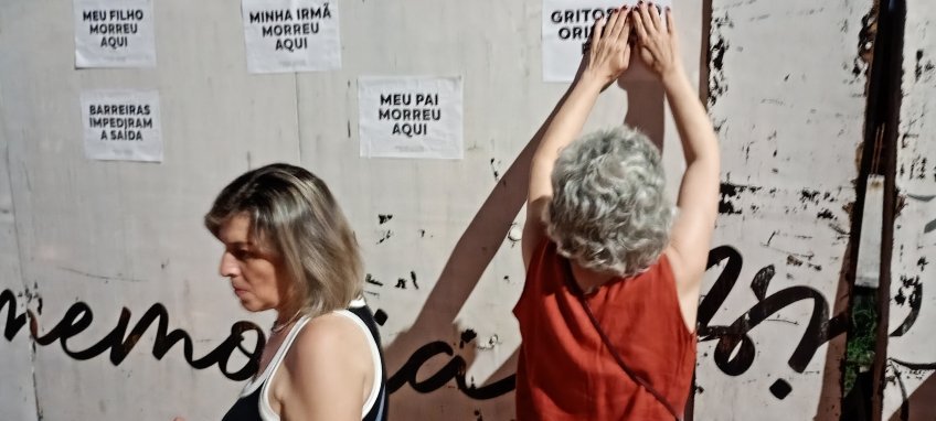 Dentre as atividades em frente ao espaço que agora é da construção do memorial, as e os presentes colocaram no tapume que protege a obra, pequenos cartazes que lembravam algumas das causas e consequências da tragédia (durante o ato “Nada consta”). Em silêncio, mensagens foram sendo coladas para lembrar que o incêndio podia ser evitado e, também, que muitos do que ali estavam tiveram perdas. À meia-noite foi realizado o minuto do marulho.