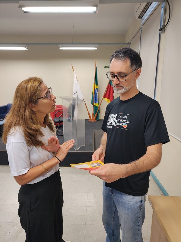 Durante o evento, a dirigente do Sinasefe SM distribuiu material impresso para a Sedufsm que trata das inconformidades em relação ao fim da CEBTT e que tem sido usado para dialogar com o segmento das escolas.