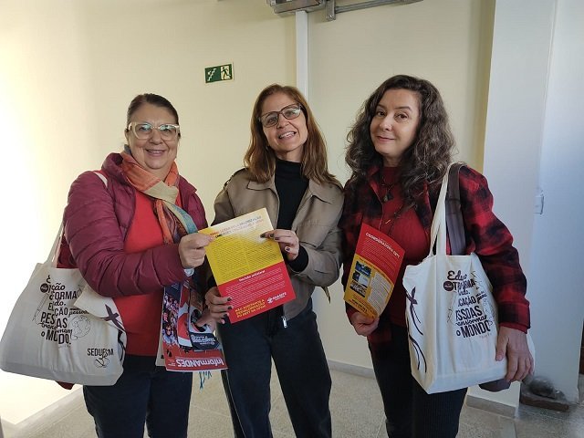 Além de ouvir com atenção tanto filiados/as como não filiados/as, a diretoria também leva materiais que pontuam as diversas formas de atuação da Sedufsm, seja através de convênios, da assessoria jurídica, ou esclarecendo sobre problemas atuais, como os assédios, através de cartilhas produzidas como ferramentas de alerta. O convite sobre a importância da sindicalização sempre está na pauta dessas mobilizações.